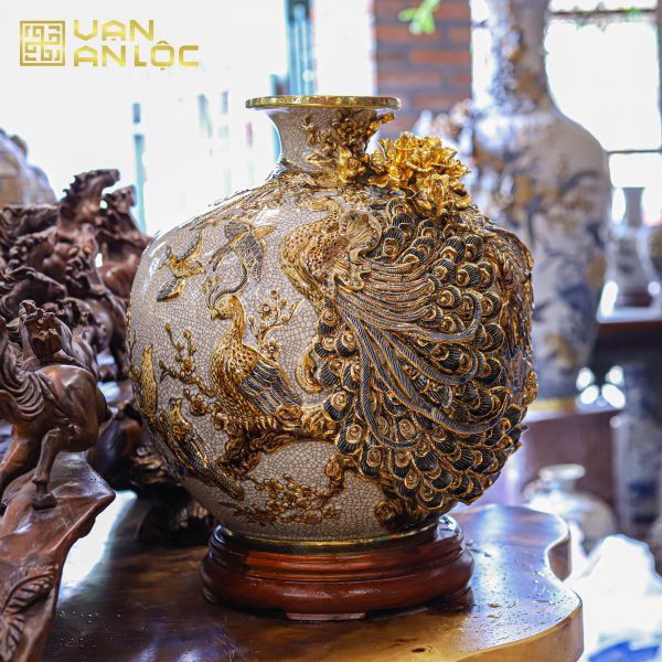 Bình Hút Lộc Công Danh Phú Quý Men Rạn Vẽ Vàng Bát Tràng