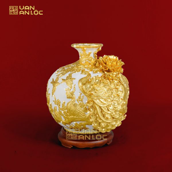 Bình Hút Lộc Công Danh Phú Quý Men Trắng Dát Vàng Bát Tràng