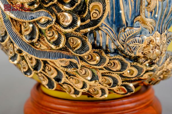 Bình Hút Lộc Công Danh Phú Quý Men Vàng Vẽ Vàng Bát Tràng