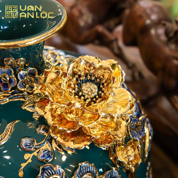 Bình Hút Lộc Công Danh Phú Quý Men Xanh Lục Bảo Hoạ Tiết Xanh Vẽ Vàng Bát Tràng
