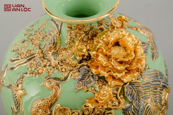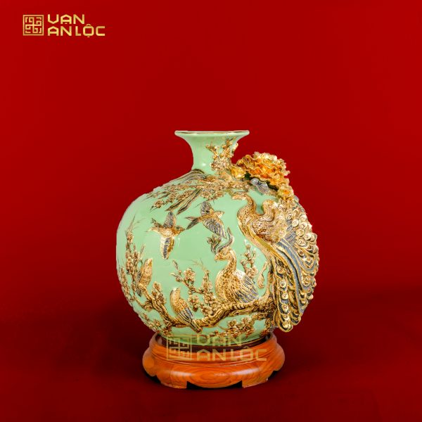 Bình Hút Lộc Công Danh Phú Quý Men Xanh Ngọc Vẽ Vàng Bát Tràng