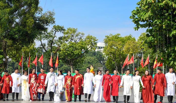 Trước đó, sáng 15/10, các cặp đôi trẻ cưới theo nếp sống mới của Thành phố thực hiện nghi lễ dâng hương, dâng cặp bánh Cốm - Phu Thê “Bảo vật tinh hoa làng nghề Việt Nam” tại Tượng đài Vua Lý Thái Tổ và Đền Bà Kiệu. Sau nghi lễ dâng hương và dâng bánh, tại sân khấu chính của Chương trình đại diện các Nhà tài trợ trao tặng nhẫn cưới, hoa và quà cưới cho các cặp đôi; đồng thời, các cặp đôi tham gia hoạt động chụp ảnh cưới xung quanh khu vực Hồ Hoàn Kiếm.