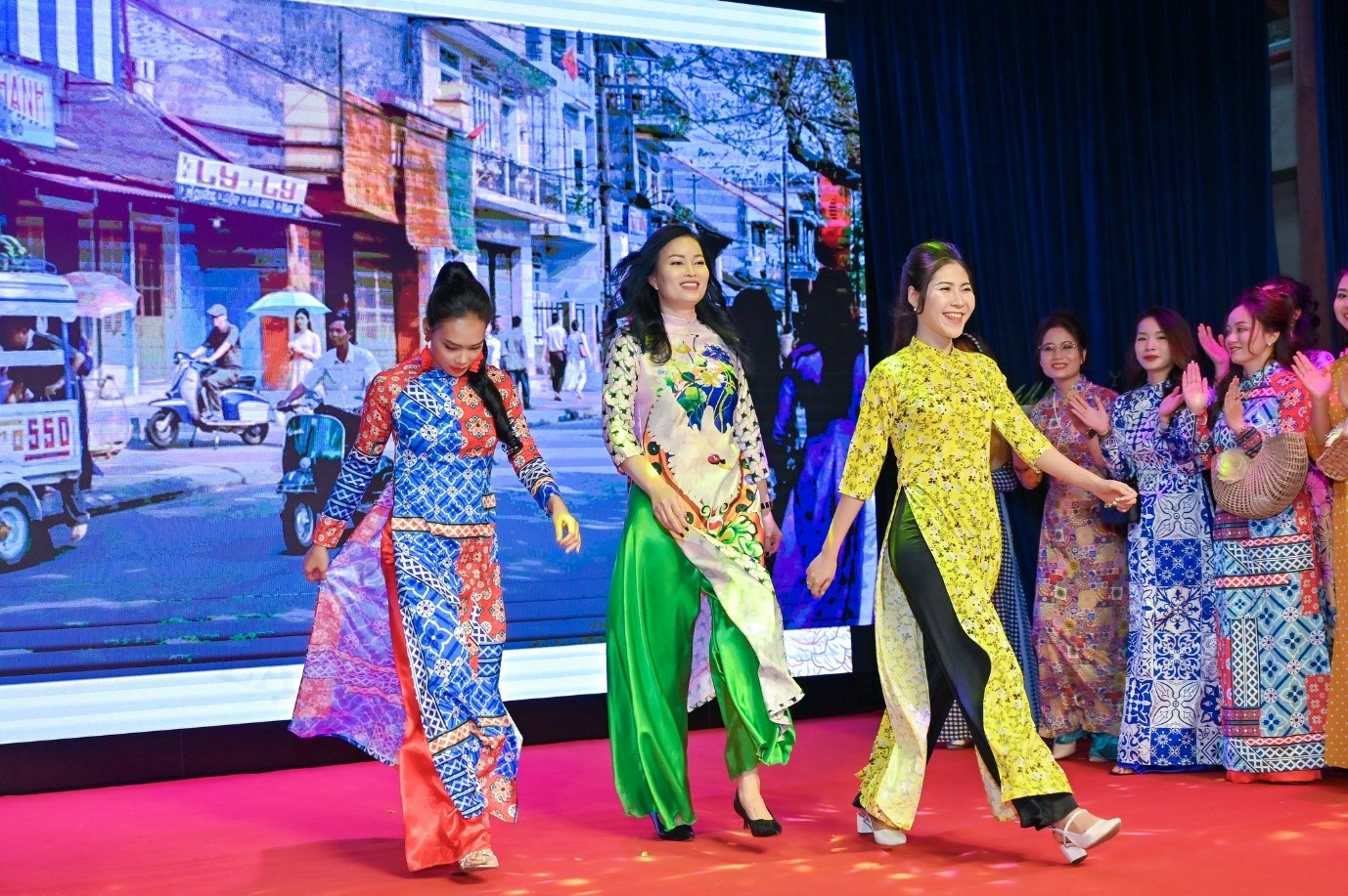“Mỗi chúng ta là một ngôi sao, vì vậy hãy luôn luôn tự tin, tỏa sáng.” Màn trình diễn của các chị em hội viên Câu lạc bộ Nữ Doanh nhân - Nghệ nhân Bát Tràng trại đêm Gala.