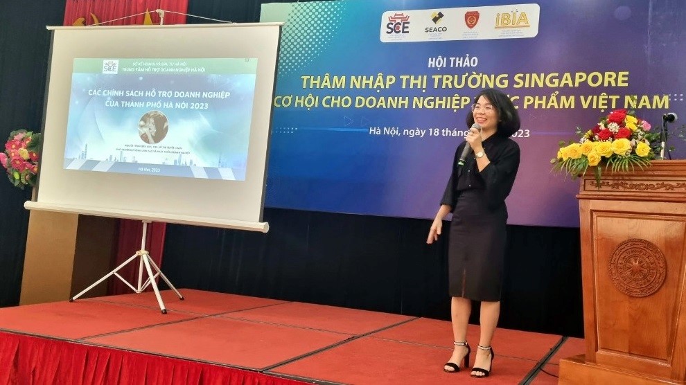 Hội thảo “Thâm nhập thị trường Singapore, cơ hội cho doanh nghiệp thực phẩm Việt Nam” cung cấp thông tin theo nhiều chiều hướng từ thị trường, chiến lược, đầu tư và các nguồn lực hỗ trợ nhằm kết nối các doanh nghiệp thực phẩm tại Hà Nội với thị trường Singapore và các đối tác tiềm năng. Hội thảo do Trung tâm Hỗ trợ doanh nghiệp Hà Nội chủ trì phối hợp với Công ty cổ phần Seaconsult (SEACO) giúp doanh nghiệp hiểu hơn về thị trường thực phẩm tại Singapore. Hội thảo đã thu hút được hơn 100 đại biểu tham dự.